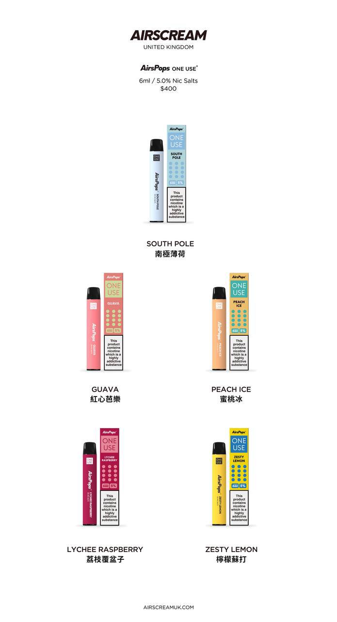 【PSY】英國原廠 Airscream AirsPops ONE USE 6ml 一次性電子煙 (50)