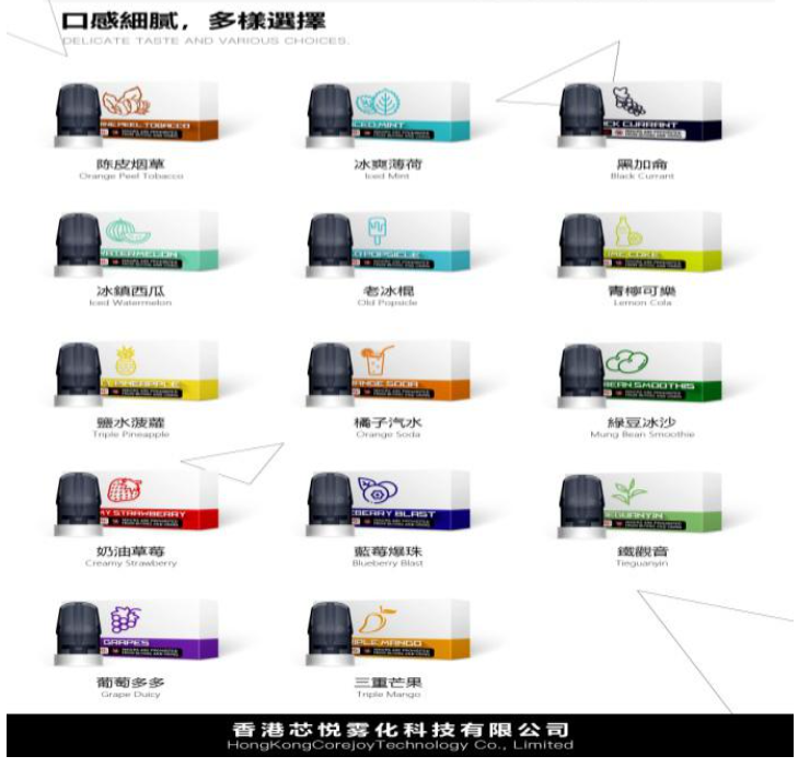 五個系列口味的煙彈,共18種不同的口味,包括綠豆冰沙、藍莓爆珠、三重芒果、草莓奶油、陳皮煙草等,可以滿足不同人對於口味的不同需求;同時Steam Power2021年版的煙彈容量從以前的1.6ml增加到2ml,可以抽300口左右,滿足用戶1-2天的使用量。